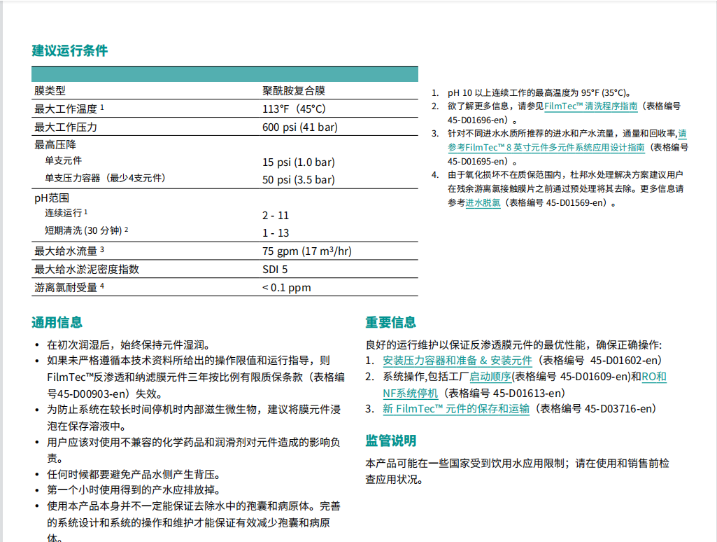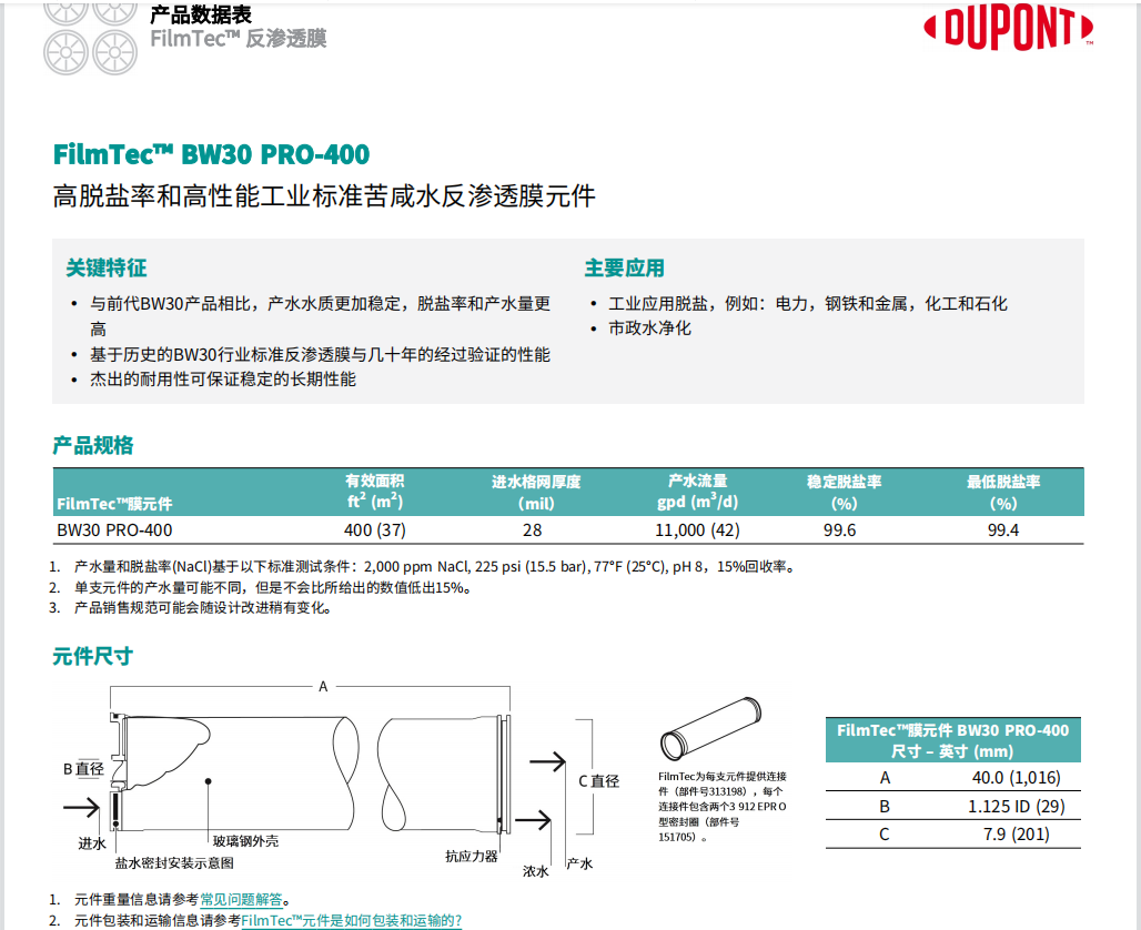 发布时间:2025-07-30 15:45:47 浏览次数:281杜邦陶氏RO反渗透膜BW30PRO-400电力石油石化金属工业脱盐用