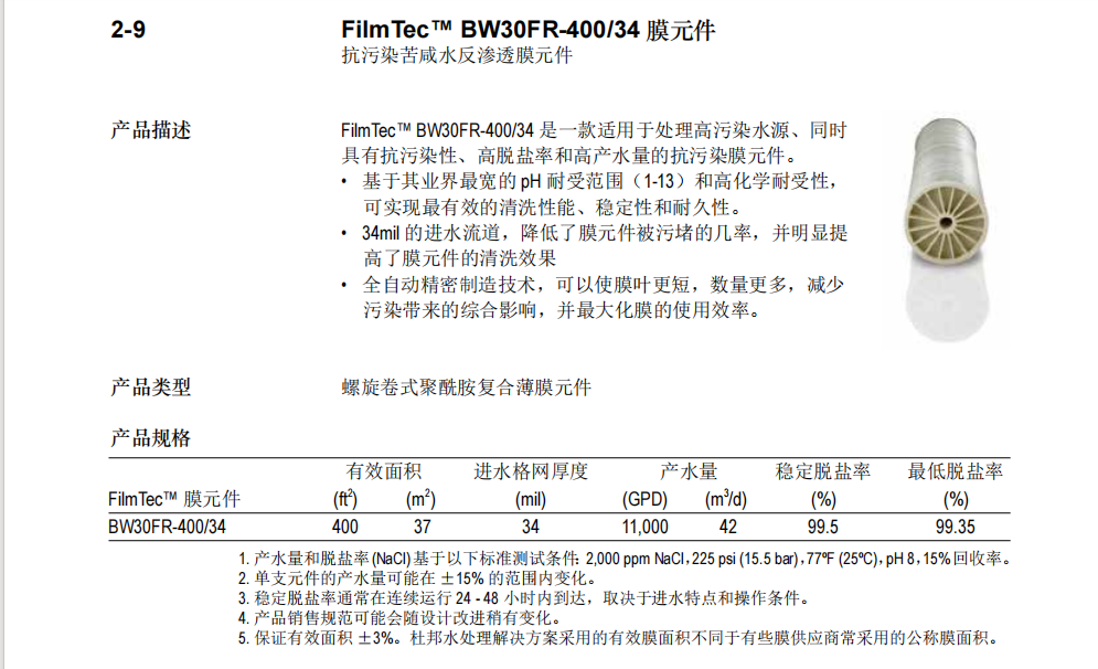 发布时间:2025-07-31 15:03:11 浏览次数:293杜邦陶氏抗污染BW30FR-400/34反渗透膜