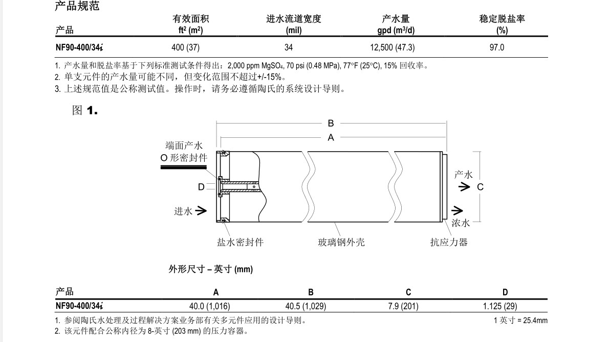 发布时间:2025-08-28 09:52:39 最后更新:2025-08-28 09:56:46 浏览次数:175杜邦NF90-400/陶氏纳滤膜地下水除硬度染料提纯浓缩脱盐