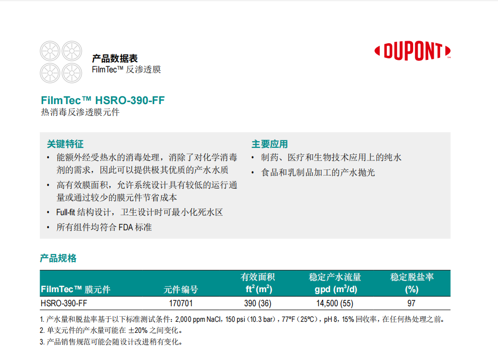 杜邦陶氏HSRO-390-FF热消毒反渗透膜